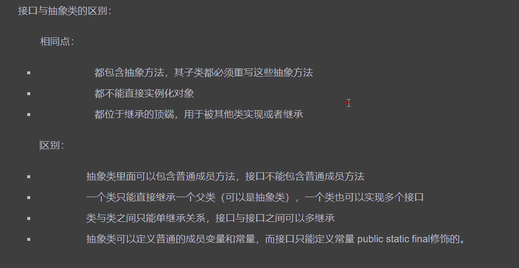抽象类里面可以包含普通成员方法,接口不能包含普通成员方法