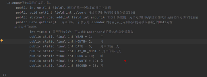java.util.Calendar 日历类,抽象类,在Date类后出现的,替换掉了很多Date类中的方法。该类将所有的可能用到的时间信息封装为静态成员变量,通过类名.静态成员变量获取时间字段值