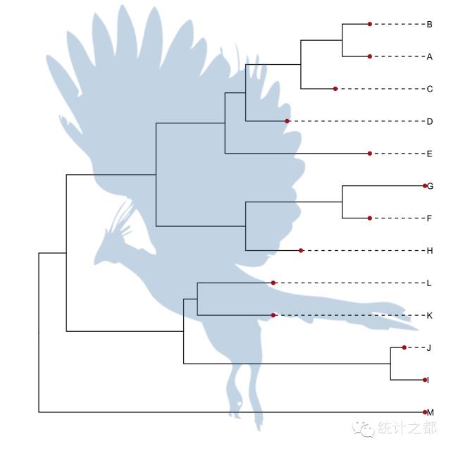 我们把树当成节点的集合,而不是线条的集合,这一点回归到了进化树的本质意义上,使这一实现成为可能。而支持图形语法,与ggplot2的无缝衔接又让注释变得更加容易。ggtree为我们打开了各种注释和操作的可能性。甚至于可以创造出好玩的图,比如使用showtext来加载图形化的字体、用emoji来画树、使用图片来注释树等等。