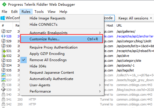 添加中customize Rules 会出现打不开或出错的情况,可以直接搜索电脑中的customRules.js,直接贴到headers中也可以实现