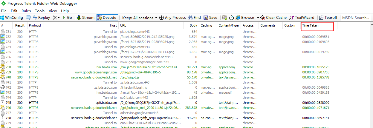 Fiddler查看接口响应时间