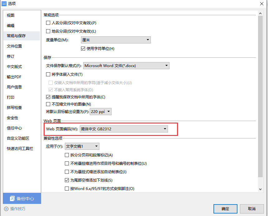2)若使用的是WPS则暂没有找到表格如何更改编码格式,不过word的更可以在“选项”的“常规与保护”更改