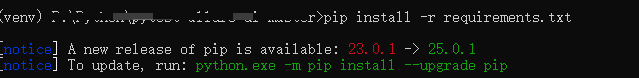 python库更新提示A new release of pip is available: 23.0.1 -> 25.0.1
