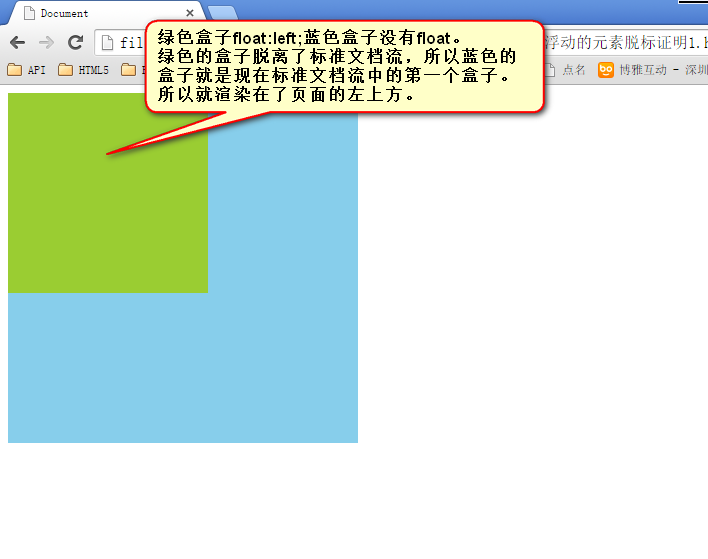 由于浮动框不在文档的普通流中,所以文档的普通流中的块框表现得就像浮动框不存在一样。