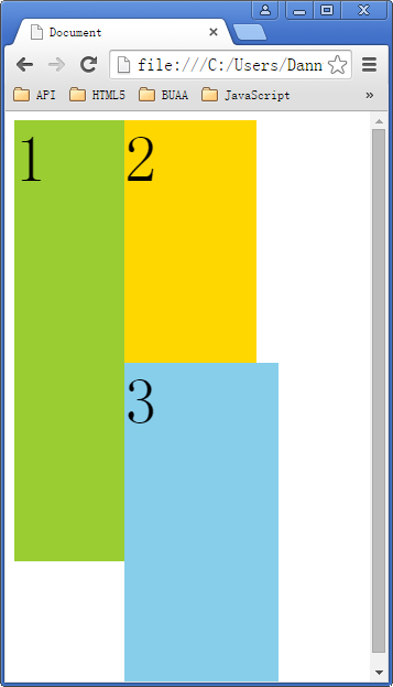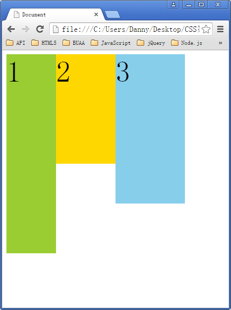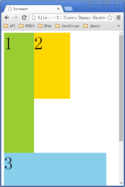 如下图所示,如果包含框太窄,无法容纳水平排列的三个浮动元素,那么其它浮动块向下移动,直到有足够的空间。如果浮动元素的高度不同,那么当它们向下移动时可能被其它浮动元素“卡住”: