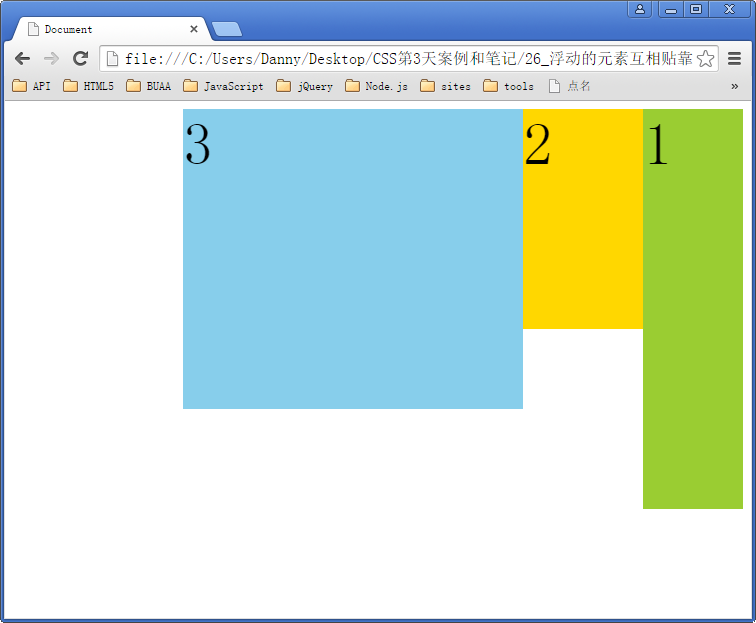 如果把所有三个框都向左移动,那么框 1 向左浮动直到碰到包含框,另外两个框向左浮动直到碰到前一个浮动框。