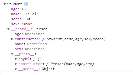 Student.prototype在内存中不是独立的空间,而且指向了person的原型空间,这样的话 student添加自己的方法,就等于person添加方法