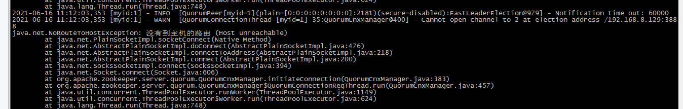 部署zookeeper,状态失败,日志报没有到主机的路由No route to host