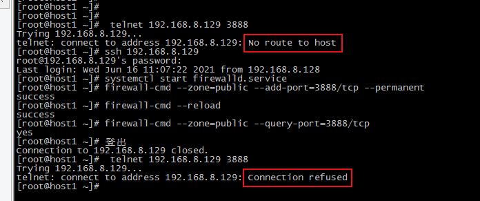 验证端口状态:firewall-cmd --zone=public --query-port=3888/tcp
