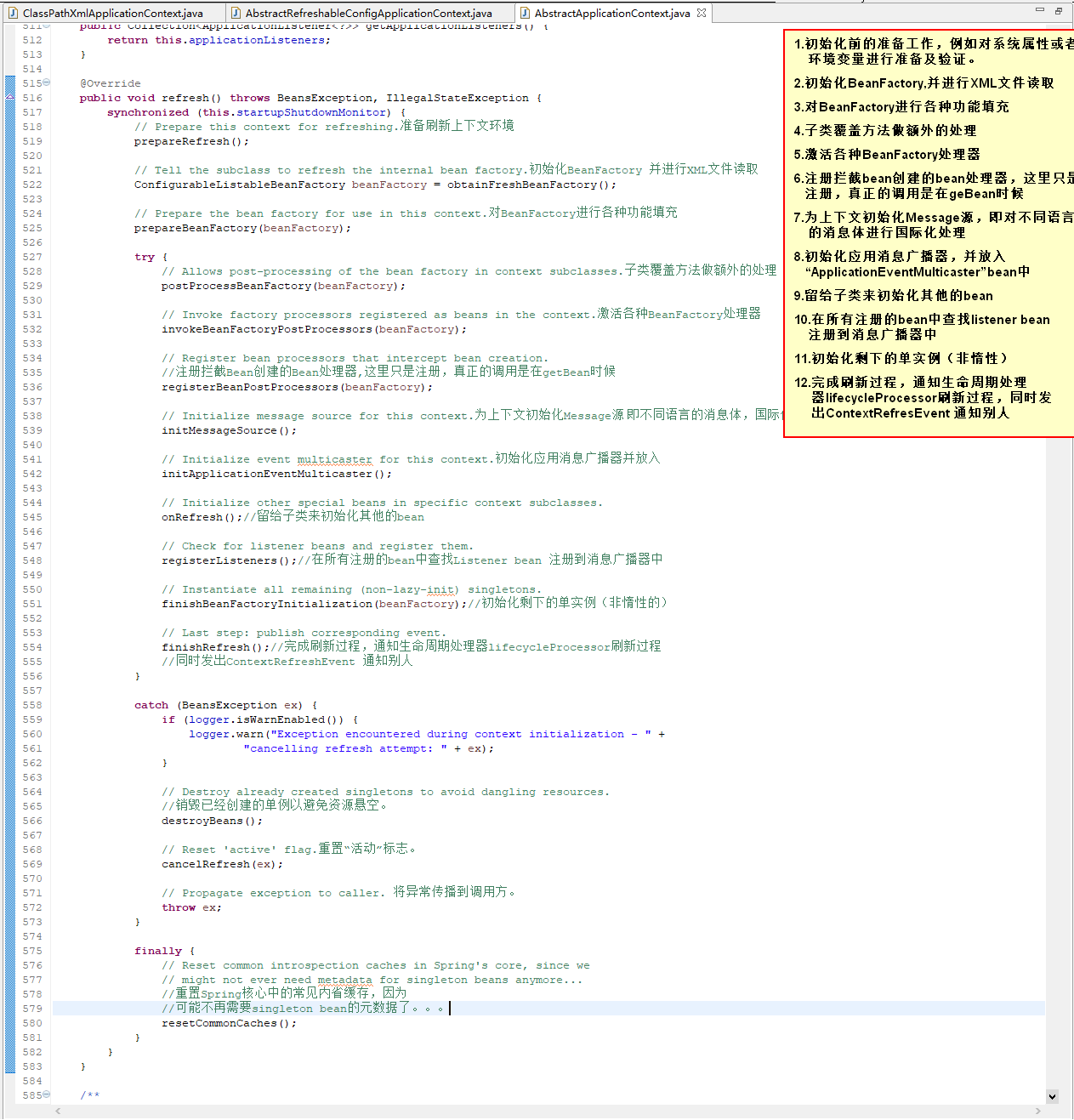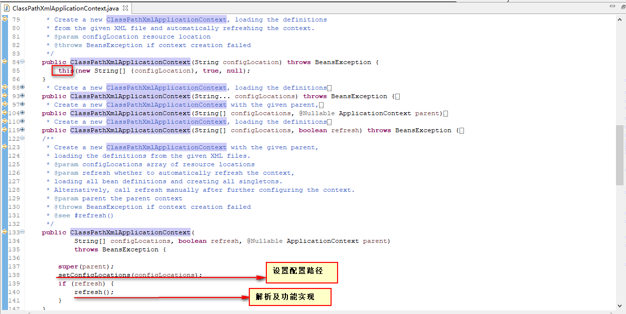 以ClassPathXmlApplicationContext为切入点,代码如下: