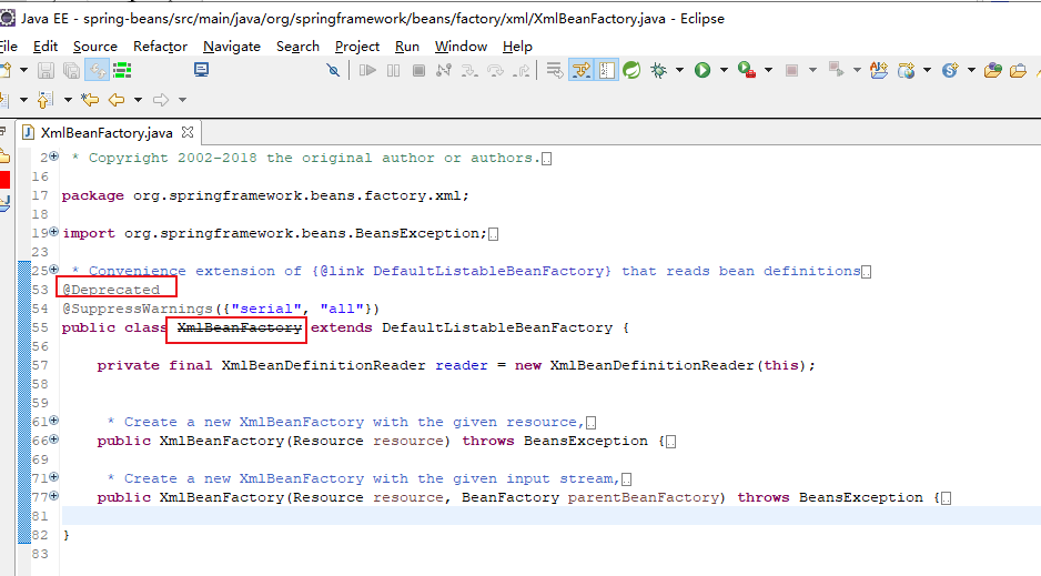 XmlBeanFactory:从Spring 3.1开始就被弃用,为啥废弃,也没找到具体原因,只是说过时了!!!