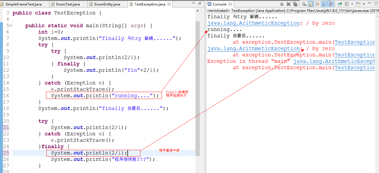 第2种:finally里面如果异常,则程序终止,尤其是所有流的关闭都放在finally里面时候,很容易内存泄漏,淡然可以在finally再次捕获