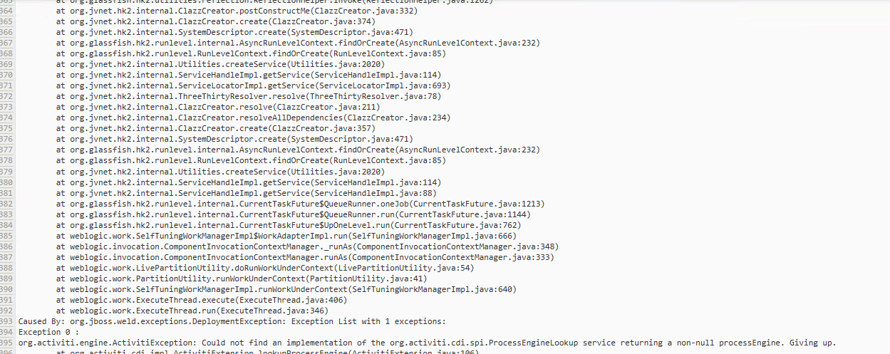 问题1:导入activiti的jar后,启动项目报错:org.jboss.weld.exceptions.DeploymentException.............