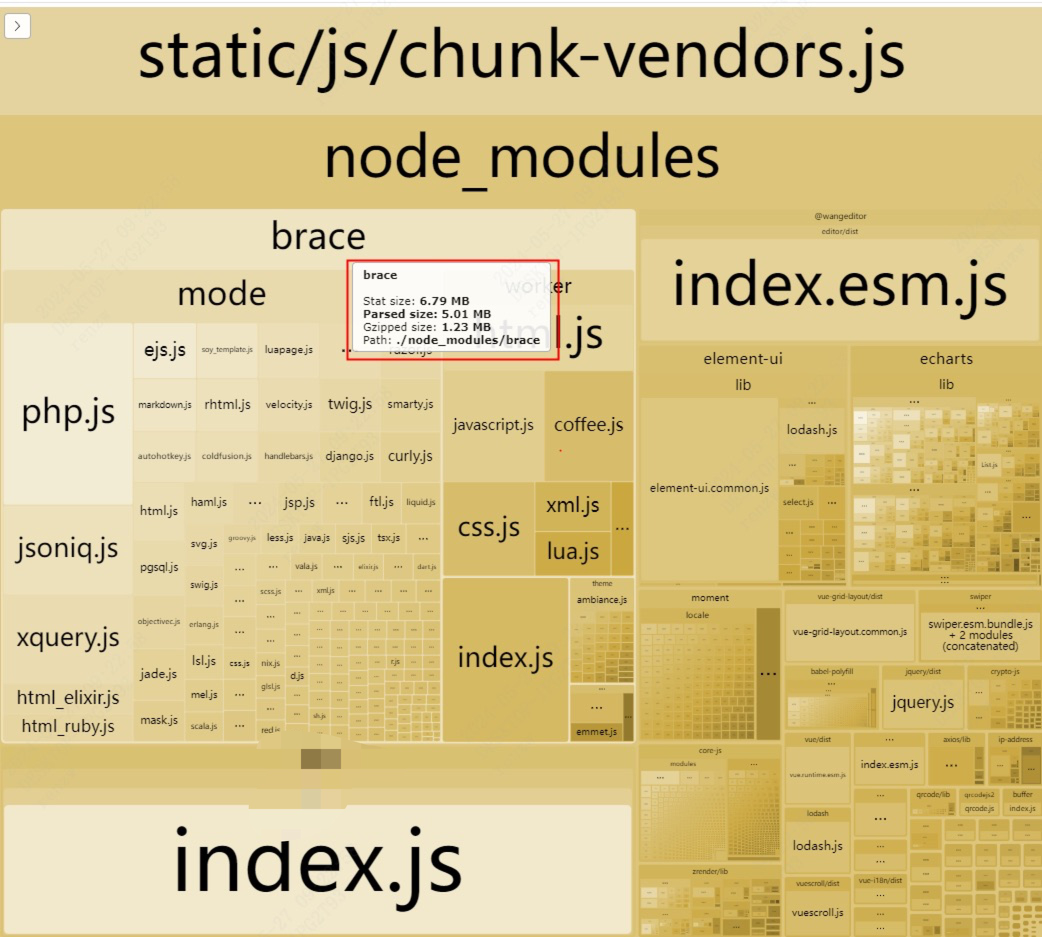 通过关系图进行依赖分析,查找是否存在不必要的前端包,是否存在功能相同的前端包。