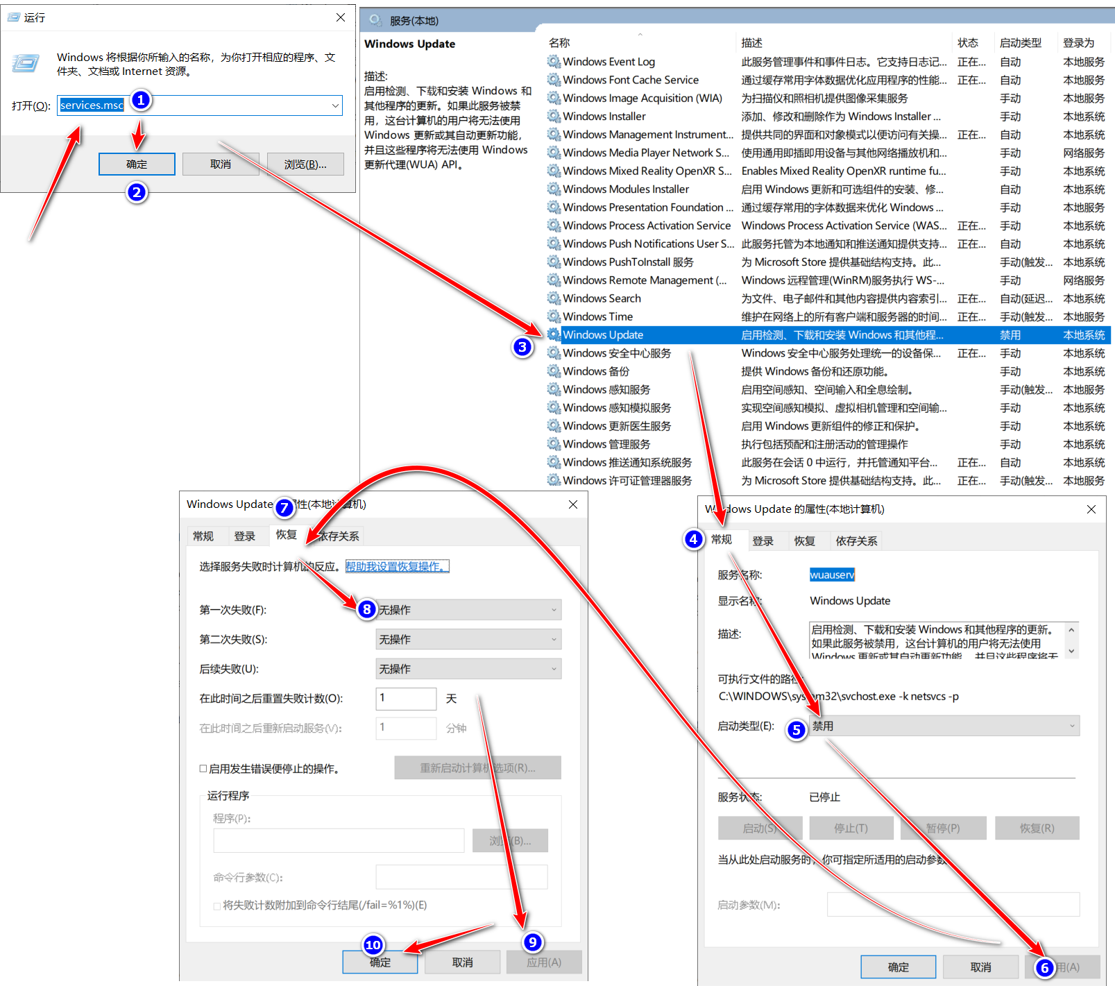 从Windows Update服务、组策略、计划任务、注册表这四个方面入手来设置 ,禁用win10 更新。