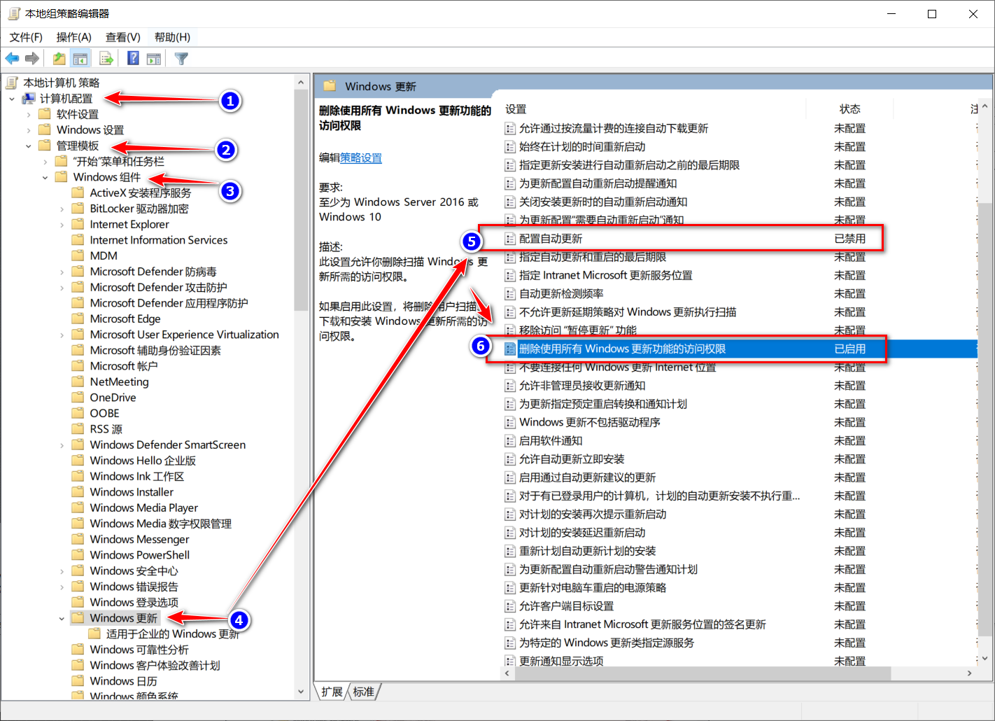- 在组策略编辑器中依次展开: 计算机配置 -> 管理模板 -> Windows组件 -> Windows更新