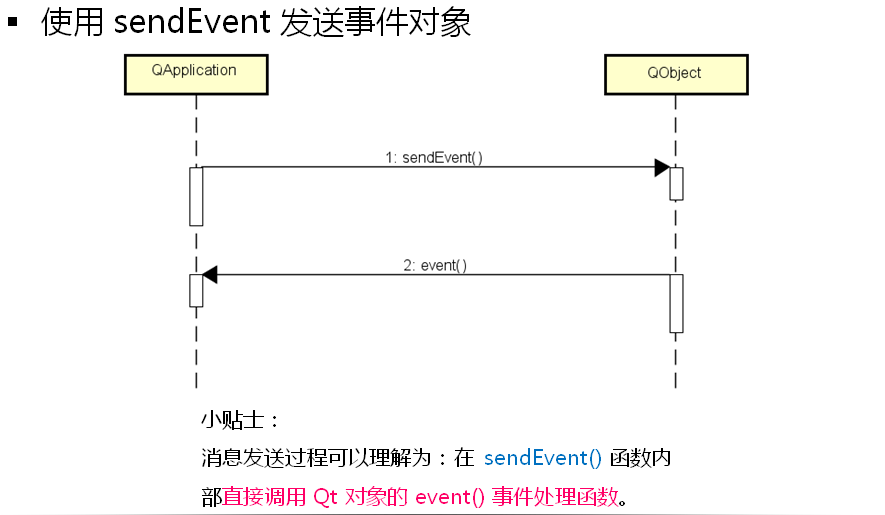 sendEvent(QObject* receiver,QEvent* event) 中事件对象的生命期由QT程序管理,它同时支持栈事件对象和堆事件对象的发送
