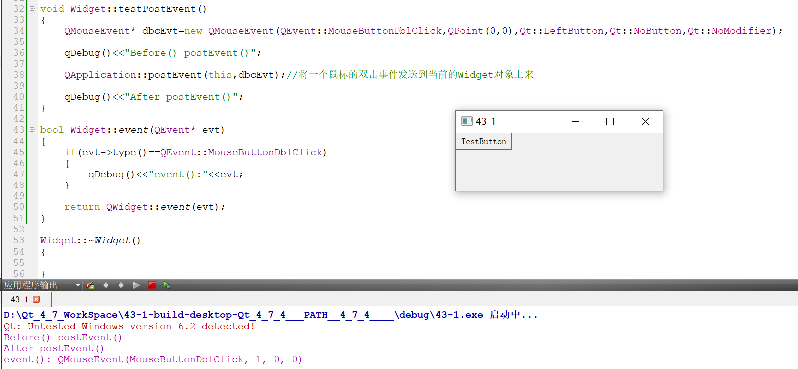QApplication::postEvent(this,dbcEvt);//将一个鼠标的双击事件发送到当前的Widget对象上来