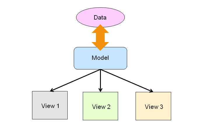 模型用来组织数据的,那么模型用来组织的这些数据,拿来干嘛呢?是不是把数据放在内存里面呢?当然不是的,放在内存里面谁知道呢?数据肯定是要被呈现出来的,那么为了更好的将数据呈现出来,我们就需要视图,视图就需要从模型这里拿到数据,并且以自己的方式显示出来。这个就是模型视图设计模式的直观的理解。