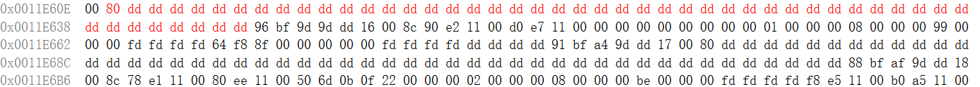 发现其周围红了一大片,如果是采用内存池的话,肯定不是这样的。所以综合上述所说的1,2两点,我们就可以得知,分配器的底层工作原理不是内存池机制。