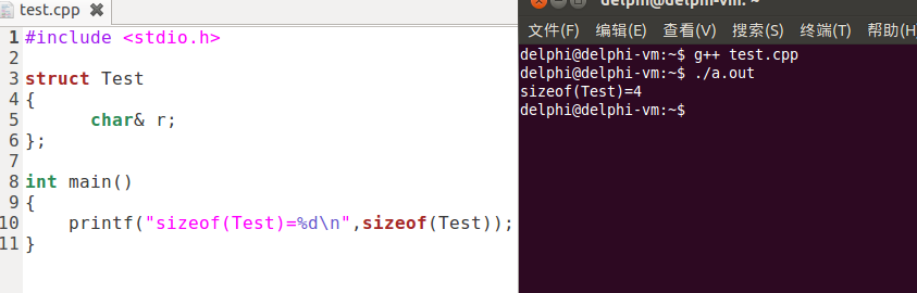 在g++编译器中,把一个引用放在结构体中,然后输出这个结构的大小的时候发现,结构体的大小为4字节。