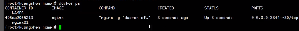 第五步 查看nginx是否启动成功 docker ps是查看进程