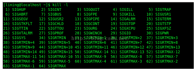 |SIGHUP| 1| 终端断线 | | kill -1 PID|