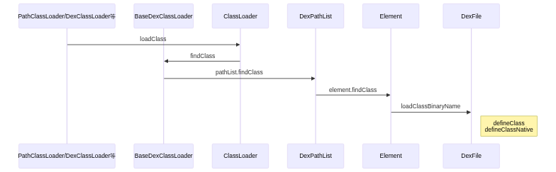 PathClassLoader 和 DexClassLoader都可以加载dex文件,其对应的基类都是BaseDexClassLoader。在new一个PathClassLoader/DexClassLoader对象时就会调用其对应的构造函数,然后调用父类BaseDexClassLoader的构造函数。最终的调用链为: