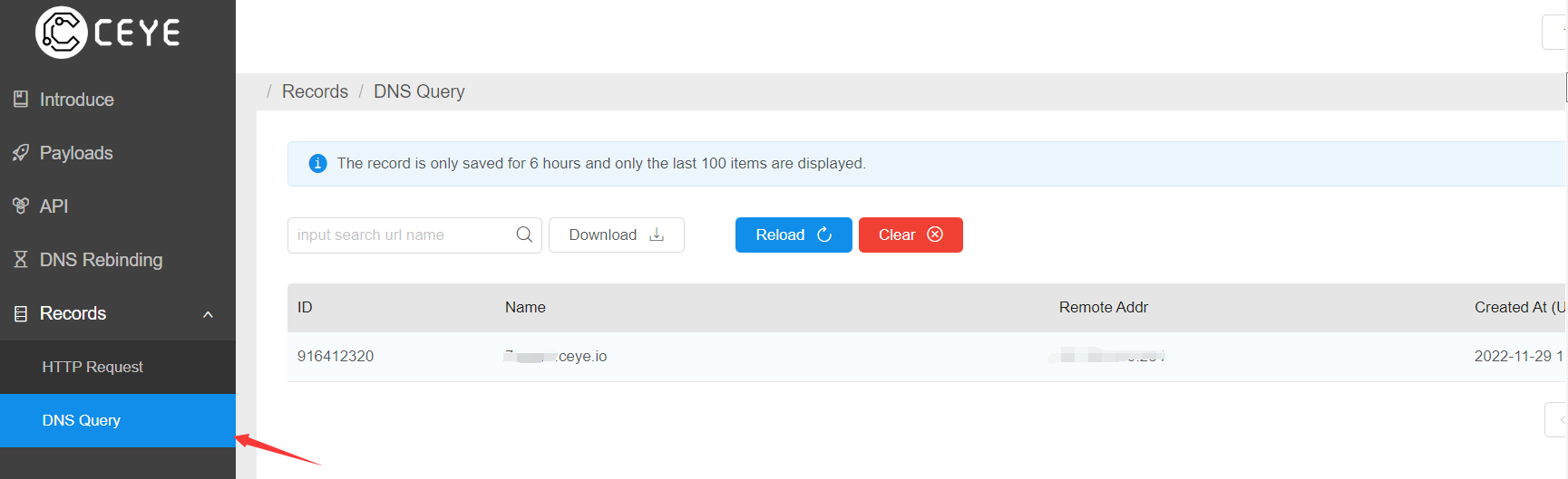 然后在ceye平台上就会有一个对应的记录