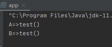 System.out.println("A=>test()");