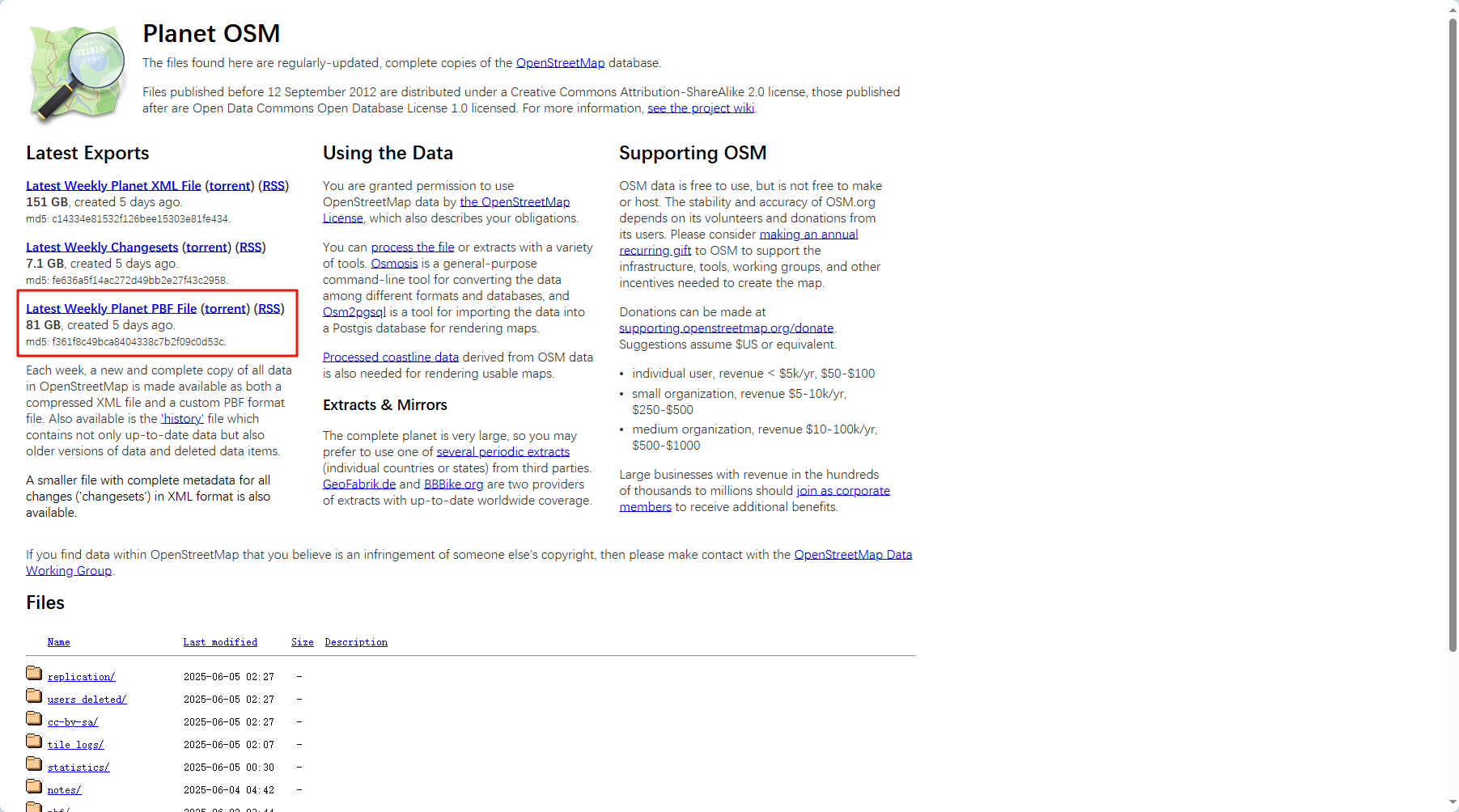 - 先去openstreetmap官网下载全球PBF数据,Planet OSM ,
