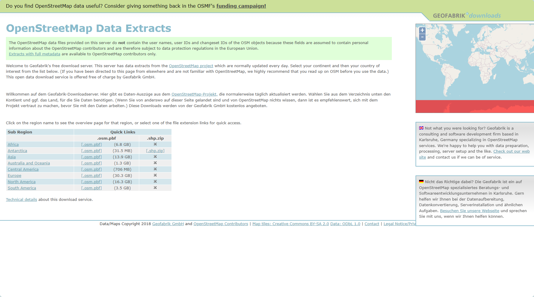 - 如果仅仅只是想使用某个区域的地图,可以在这里下载 Geofabrik Download Server