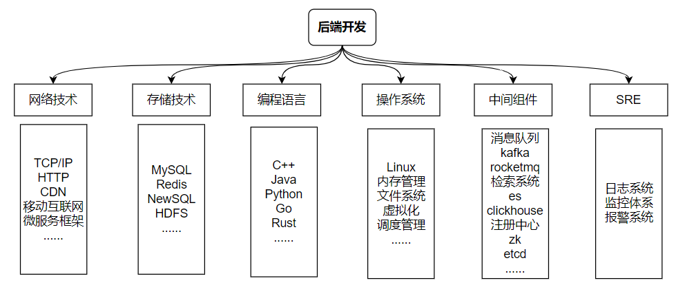 - 存储系统:MySQL、Redis、MongoDB等关系型&非关系型数据库