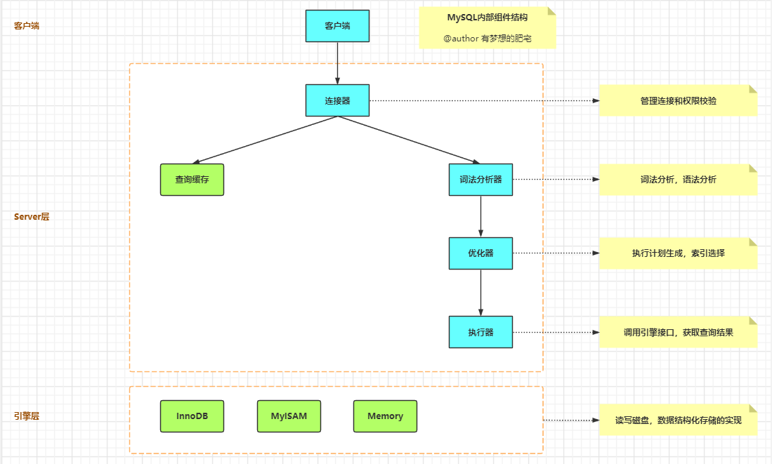 我们简单的通过一张图来分析MySQL内部组件结构: