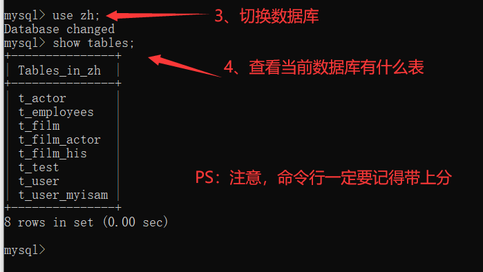 mysql > SHOW DATABASES; -- 显示所有数据库 mysql > USE 对应的数据库名称; -- 打开数据库; mysql > SHOW TABLES; -- 查看当前数据库的表