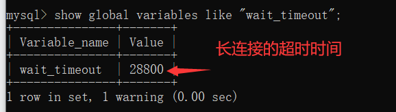 PS:MySQL采用的是长链接。长链接就是时间持续很长的链接,如mysql的链接时间一般是8个小时,即一次链接可以持续8小时,超过时间就会自动断开。