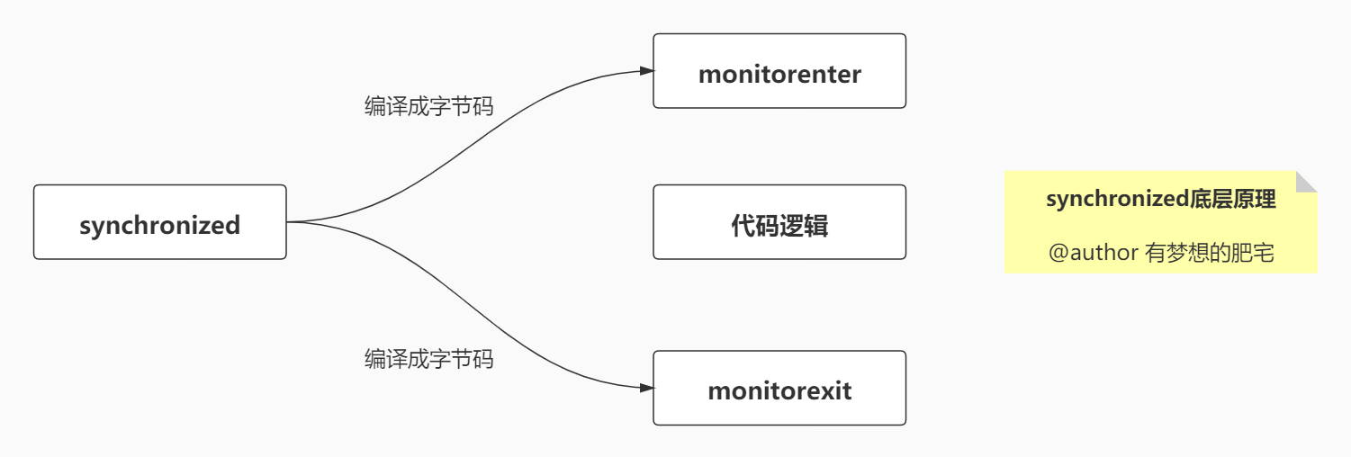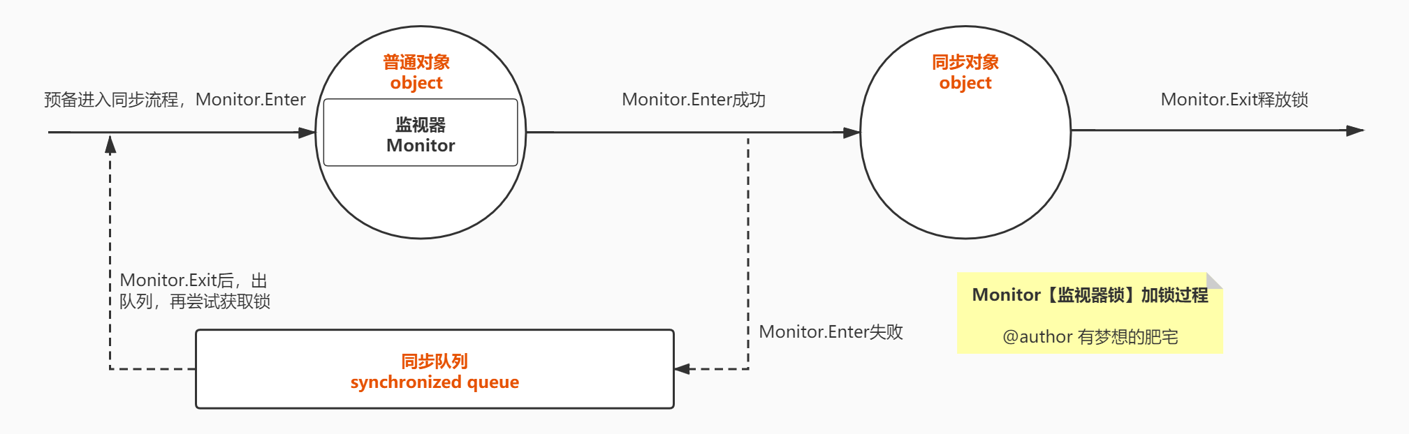 每个对象可以成为一个监视器锁(monitor)。当monitor被占用时就会处于锁定状态,线程执行monitorenter指令时尝试获取monitor的所有权,过程如下: