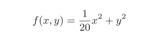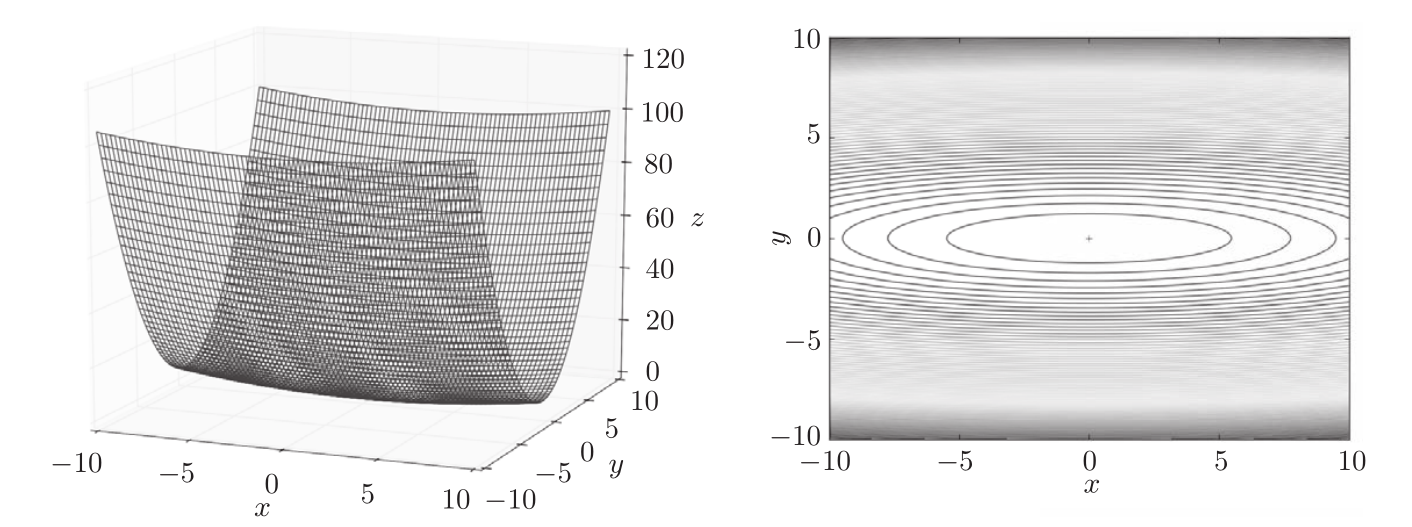 虽然SGD简单,并且容易实现,但是在解决某些问题时可能没有效率。这里,在指出SGD的缺点之际,我们来思考一下求下面这个函数的最小值的问题。