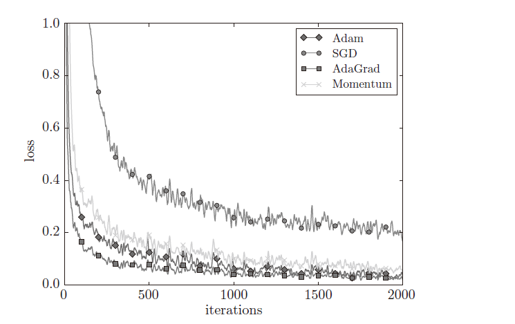 Momentum参照小球在碗中滚动的物理规则进行移动,AdaGrad为参数的每个元素适当地调整更新步伐。如果将这两个方法融合在一起会怎么样?