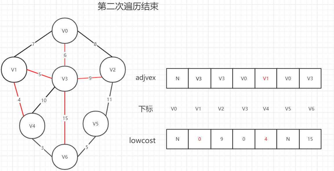 adjvex[0] = 0; //初始化第一个顶点下标为0