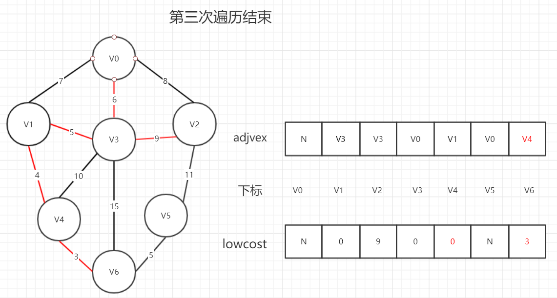 lowcost[k] = 0;//将当前顶点的权值置为0,表示此顶点已经完成任务