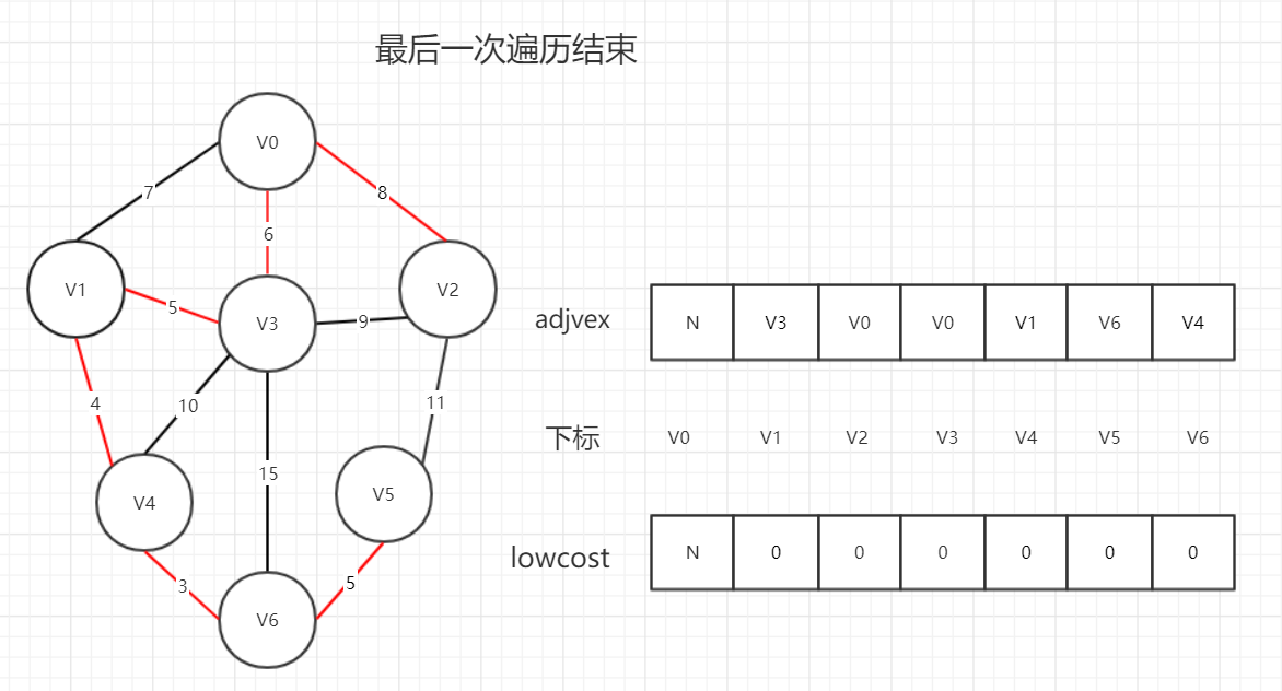 lowcost[0] = 0; //初始化第一个权值为0,即将v0加入生成树