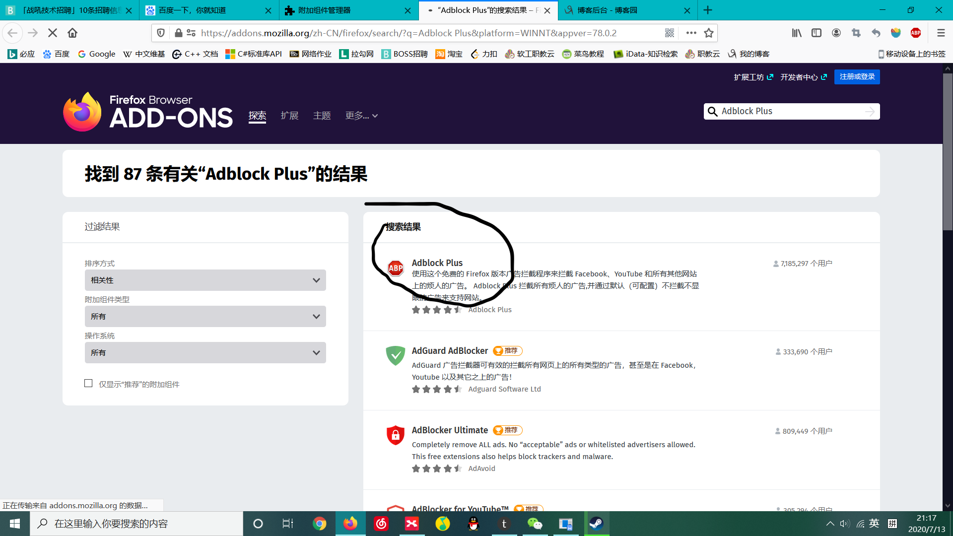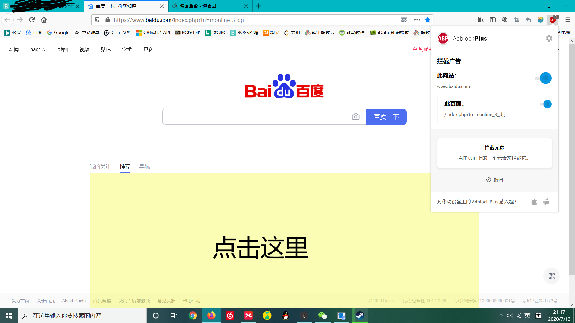 屏蔽百度热点新闻栏目,Adblock Plus 浏览器插件