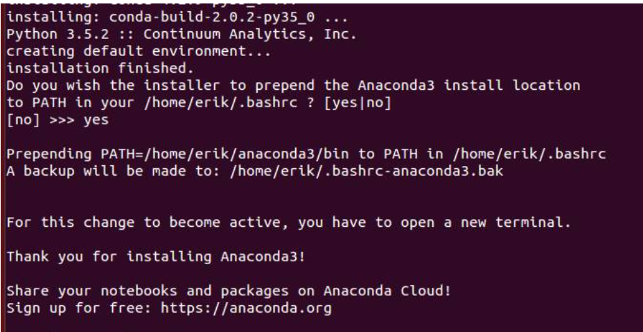 bash Anaconda3-4.2.0-Linux-x86_64.sh (更改成自己的安装包名字)