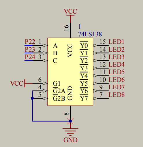上面的led灯(也就是P2)来控制灯的选择(因为只能选择一个)