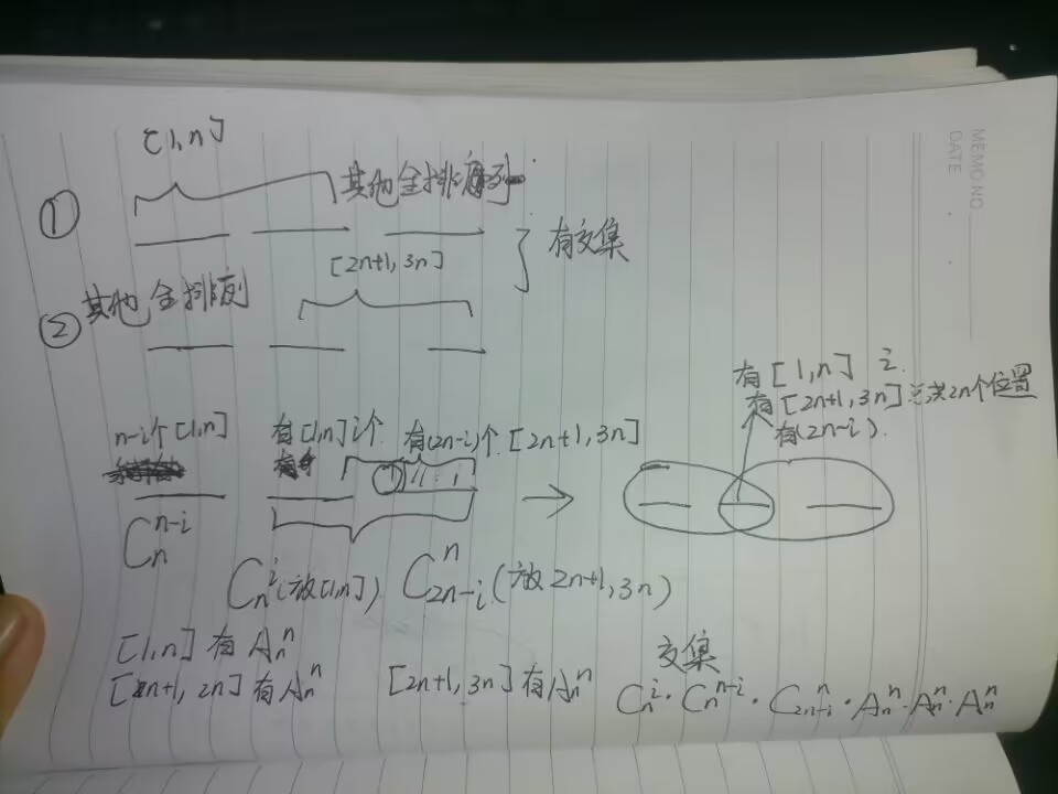 后2n个有2n+1到3n的,C(2n,n)*A(n,n)