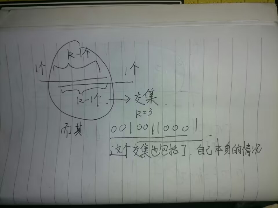 当然是从这里面字符数量里面选出k个位置来放1(但是对于我们为什么没有减去原来的那一个排序呢,请往后看)