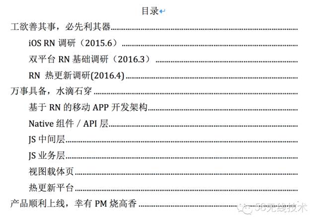 React Native是一项全新的技术,不同公司使用有不同的体验,好坏众说纷纭。基于此,必须根据自身的情况进行摸底调研。58APP的调研过程从2015年6月就开始了,那时候android还没推出,仅调研了iOS的相关情况。真正的全面调研展开是在2016年3月开始的,由宁老板亲自点将并监督进度。整个过程持续到5月初结束。下面分三个阶段介绍一下58APP调研的具体历程。